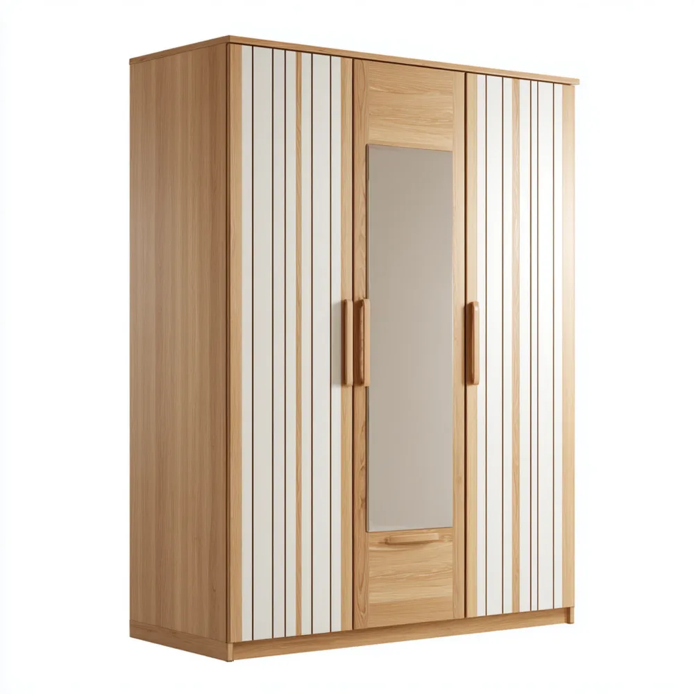 Armario de Madera con Espejo 200x60x220 cm – Blanco/Natural – Diseño Contemporáneo