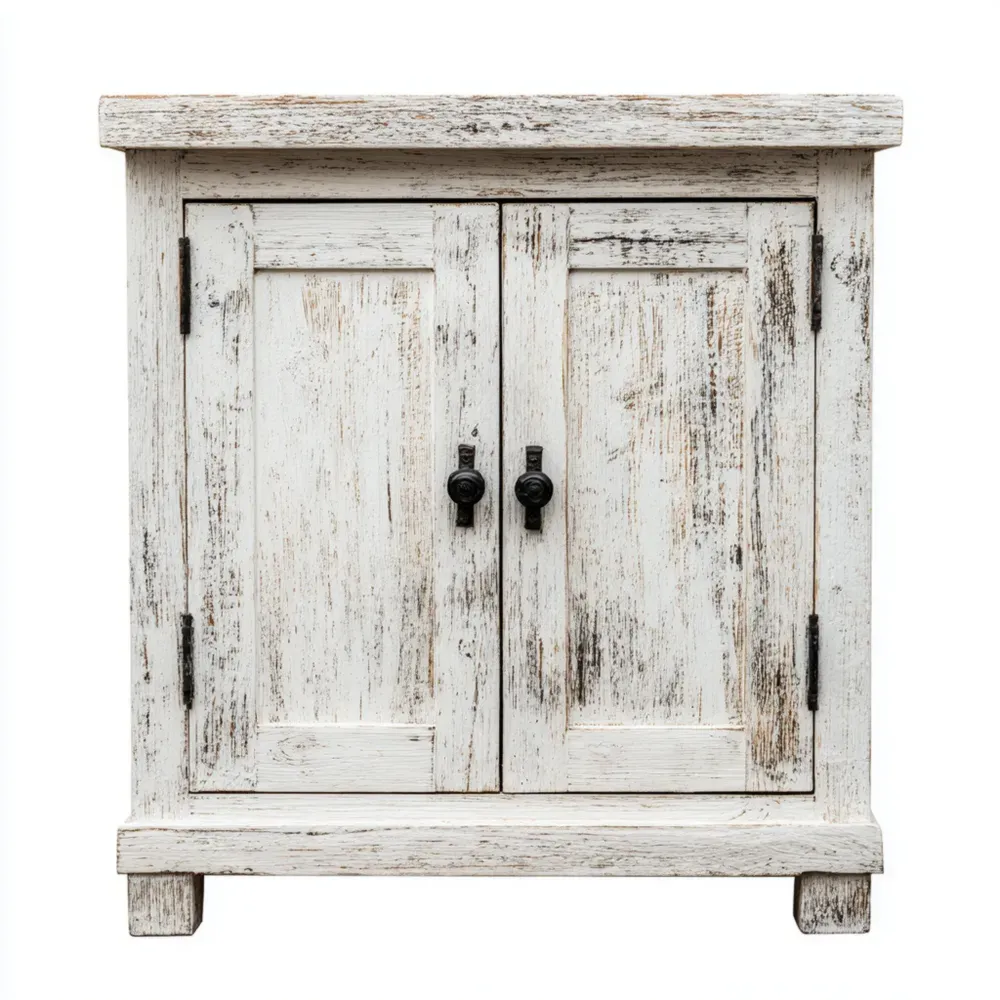 Armario de Madera Rústica 70x80x35 cm – Blanco Envejecido – Estilo Vintage