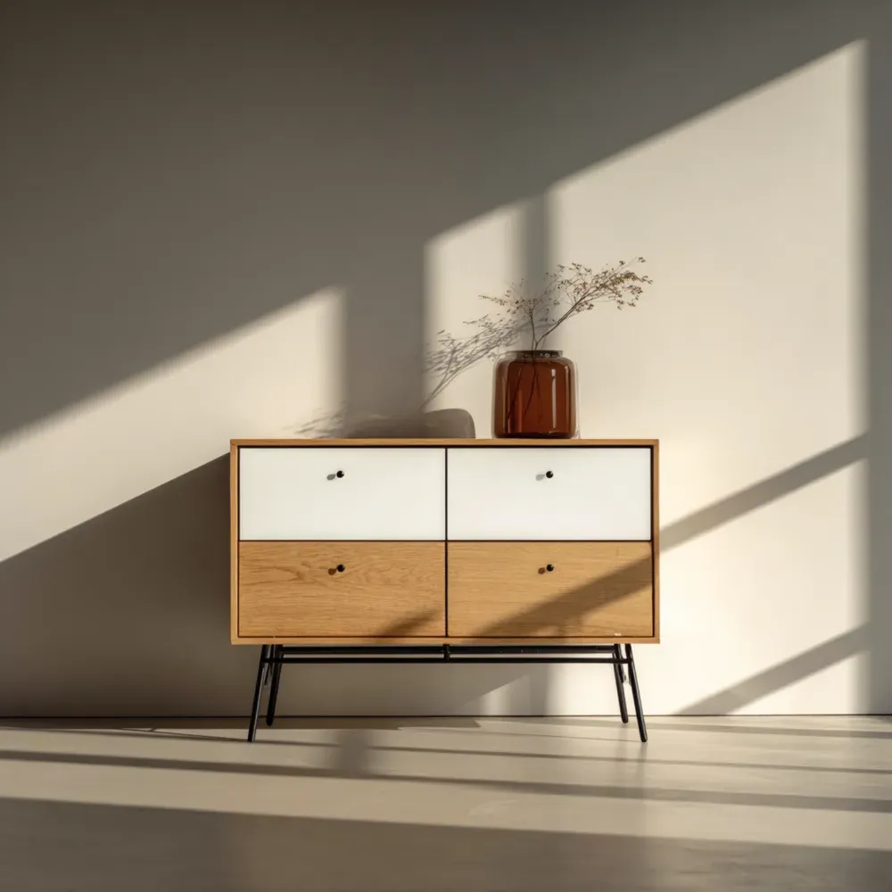 Aparador de Madera y Metal 80x35x90 cm - Blanco/Madera Natural - Diseño Moderno