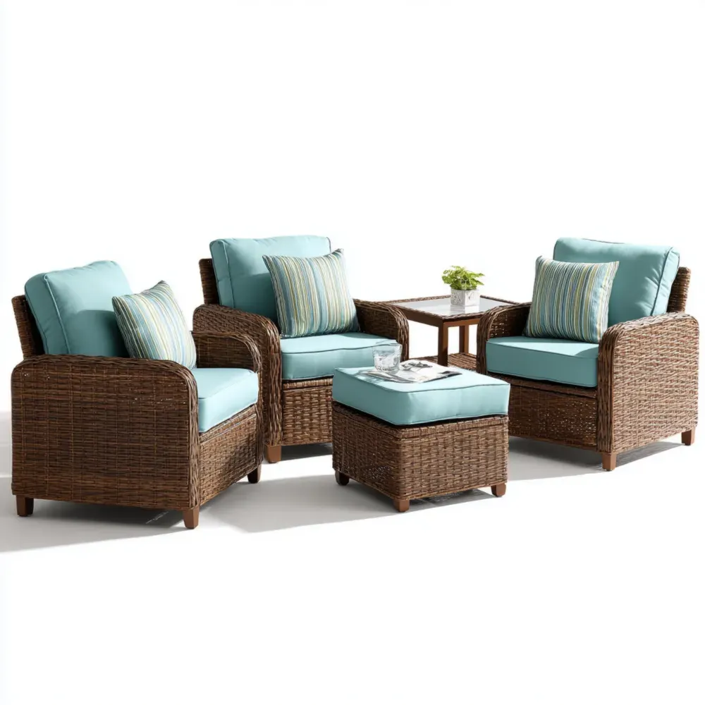 Set de Sofás de Jardín Ratán Sintético 73x70x79 cm Cojines Azul Claro Moderno