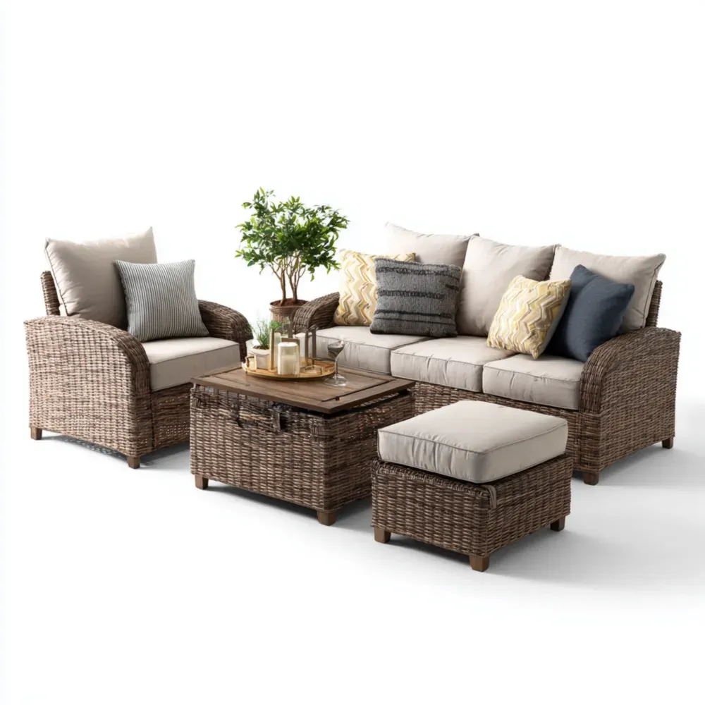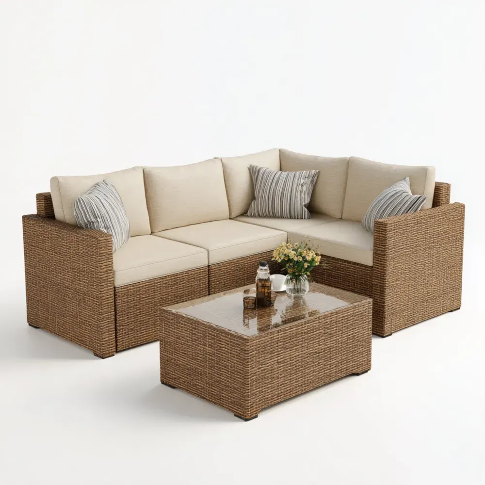 Conjunto de Sofá de Jardín de Ratán 4 Piezas 85x85x68 cm Beige - Diseño Moderno