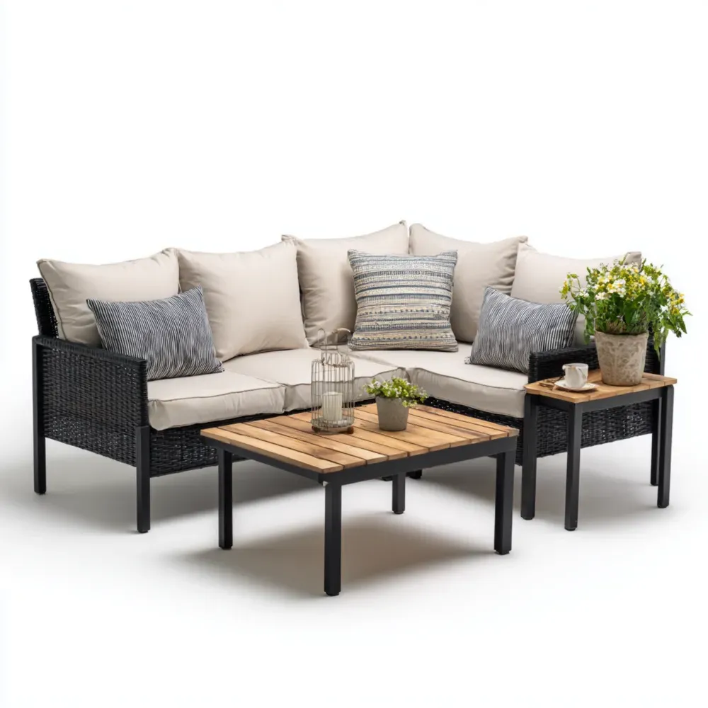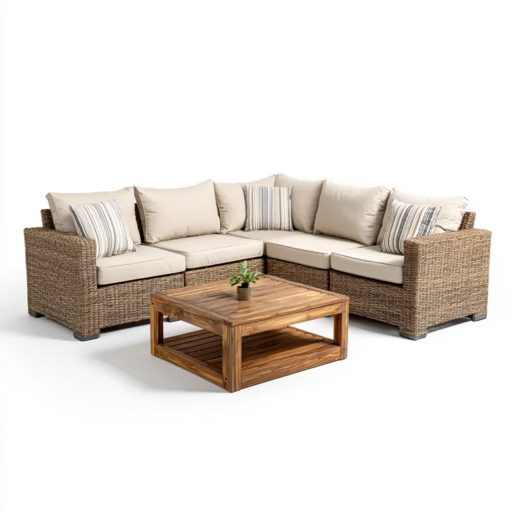 Conjunto de Sofás de Jardín Ratán 200x150x70 cm – Color Beige – Diseño Contemporáneo