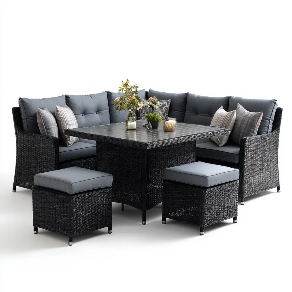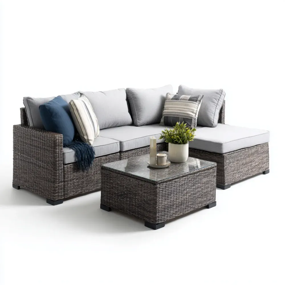 Conjunto de Sofá Esquina para Jardín Ratán Sintético 250x190x80 cm Gris - Diseño Moderno