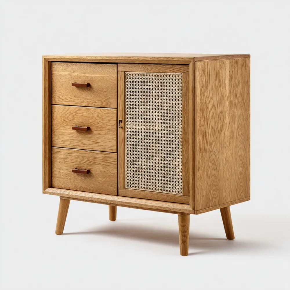 Material y AcabadoFabricado en madera natural de alta calidad con detalles en mimbre, su acabado en Color Natural proporciona un aspecto cálido y acogedor.