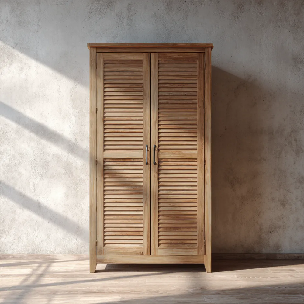 Características DestacadasLas puertas con listones brindan un estilo atemporal y favorecen la ventilación interior. Equipado con amplios estantes y espacio para colgar ropa, proporciona un almacenamiento versátil.